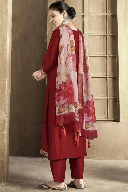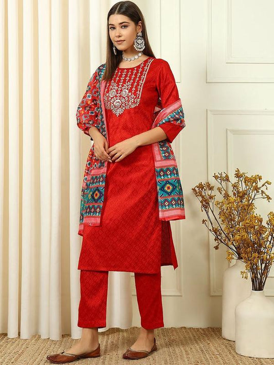Women Silk Blend Kurta Pant Dupatta Set