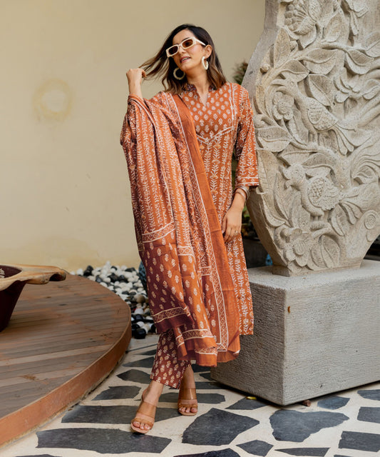 Women Pure Cotton Kurta Pant Dupatta Set