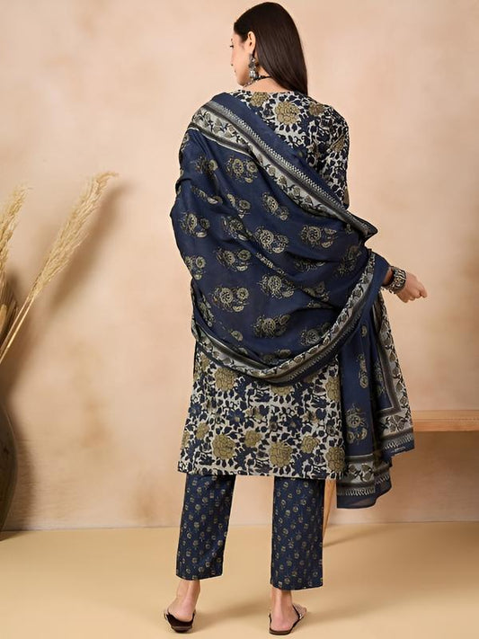 Women Cotton Blend Kurta Pant Dupatta Set