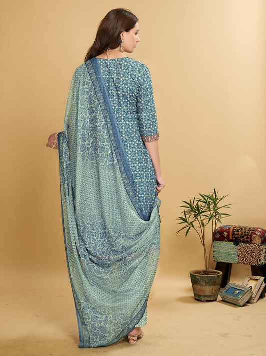 Women Cotton Blend Kurta Palazzo Dupatta Set