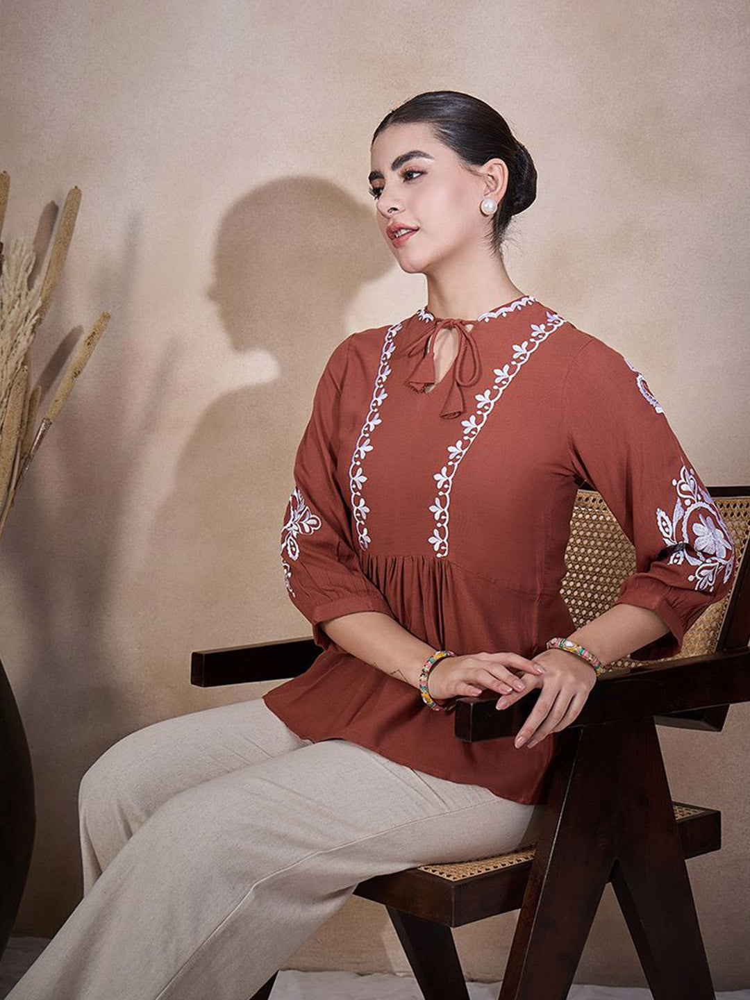 Women Embroidered Tie-Up Neck Empire Crop Top
