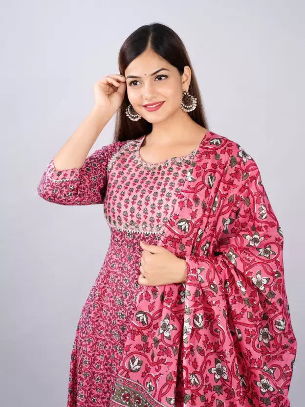 Women Kurta Pant And Dupatta Set Pure Cotton